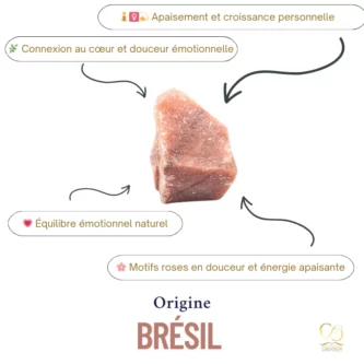 ♉♋♐ L’Aventurine Rose est associée aux signes du Taureau, du Cancer et du Sagittaire. Elle les accompagne dans leur quête de stabilité émotionnelle, de douceur intérieure et d’épanouissement affectif.
